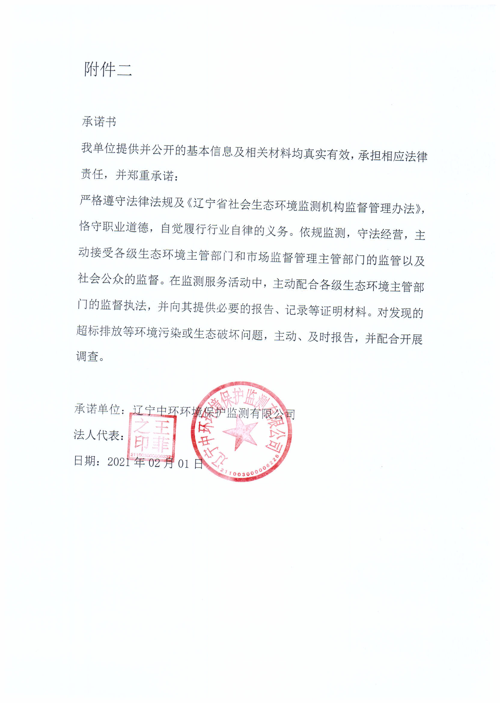 遼寧中環(huán)環(huán)境保護監(jiān)測有限公司作為社會生態(tài)環(huán)境監(jiān)測機構應文件要求向